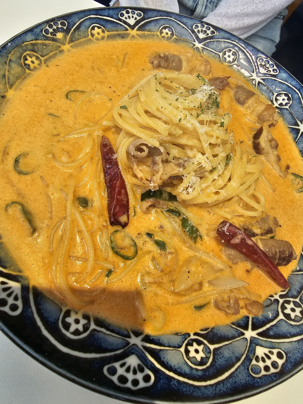 둘이서 먹었고 매운 크림 파스타와 스테이크 필라프 두개를 시켰습니다.
