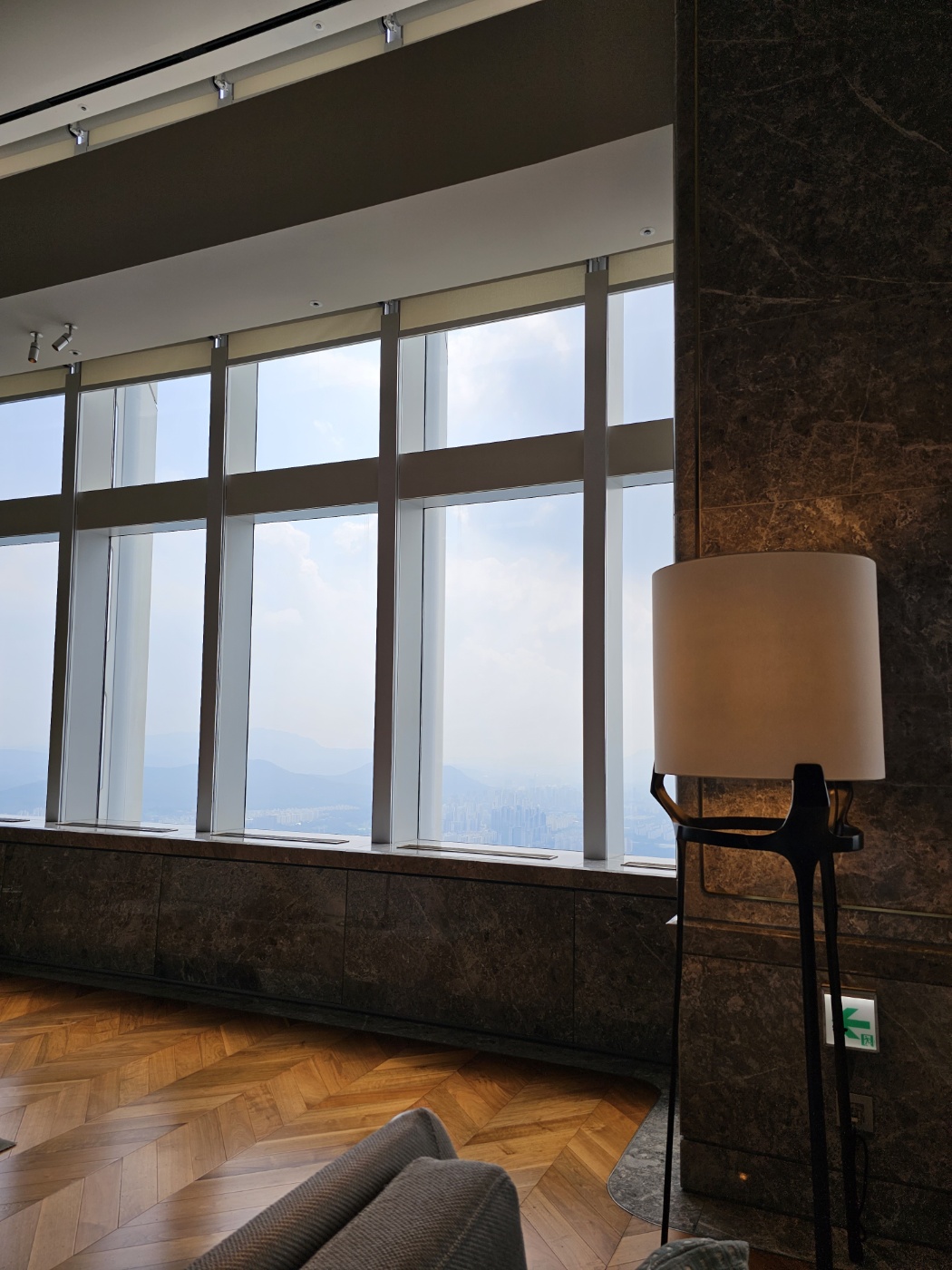 1층에 가면 직원분들이 문을 열어 주십니다. 안에 들어가 엘레베이터를 타고 79층으로 가면 로비가 나옵니다.