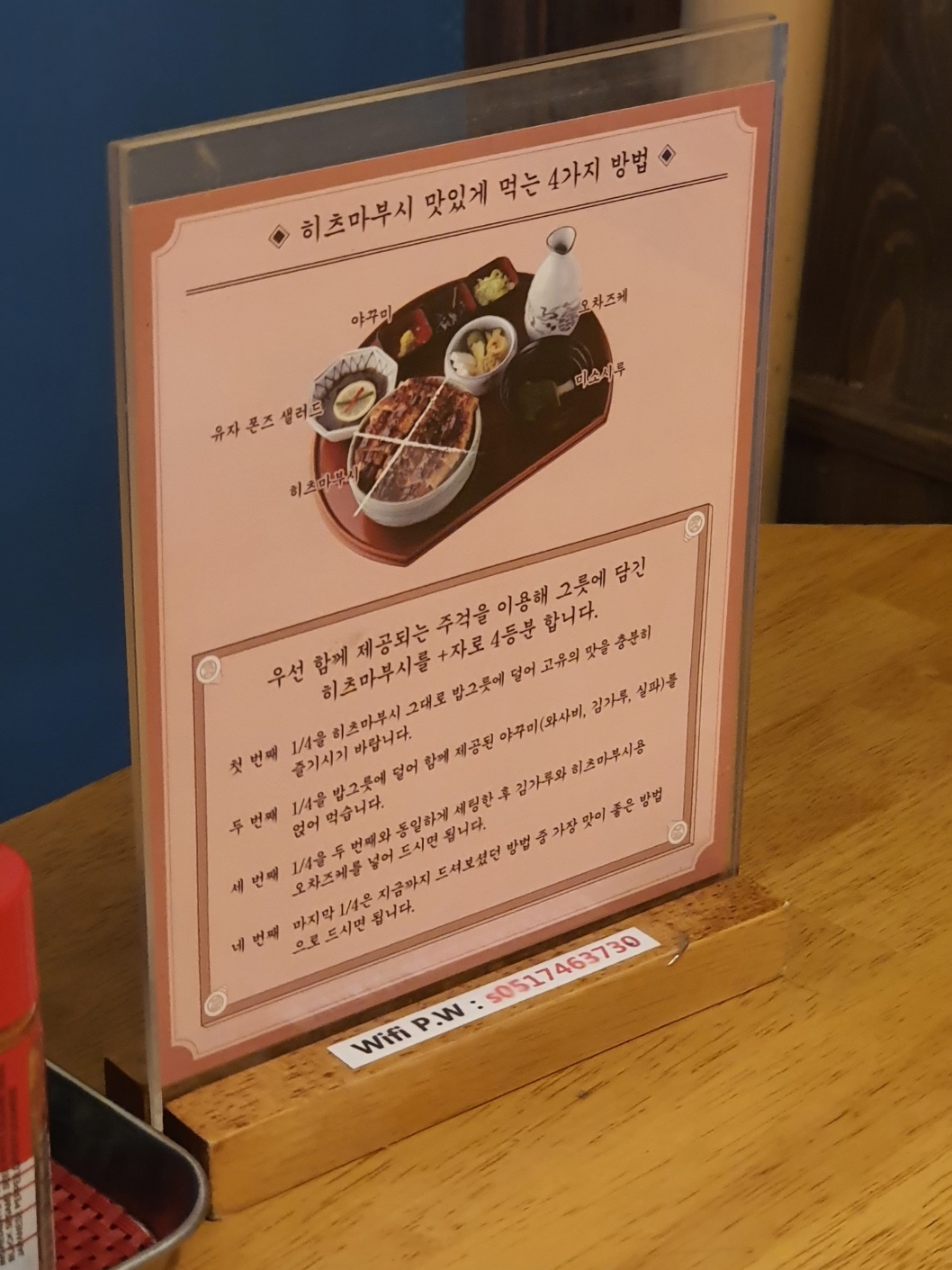 들어가기 전에 메뉴를 먼저 말해야했는데 특을 먹을지 말지 고민하다가 일반 히츠마부시를 먹었습니다.