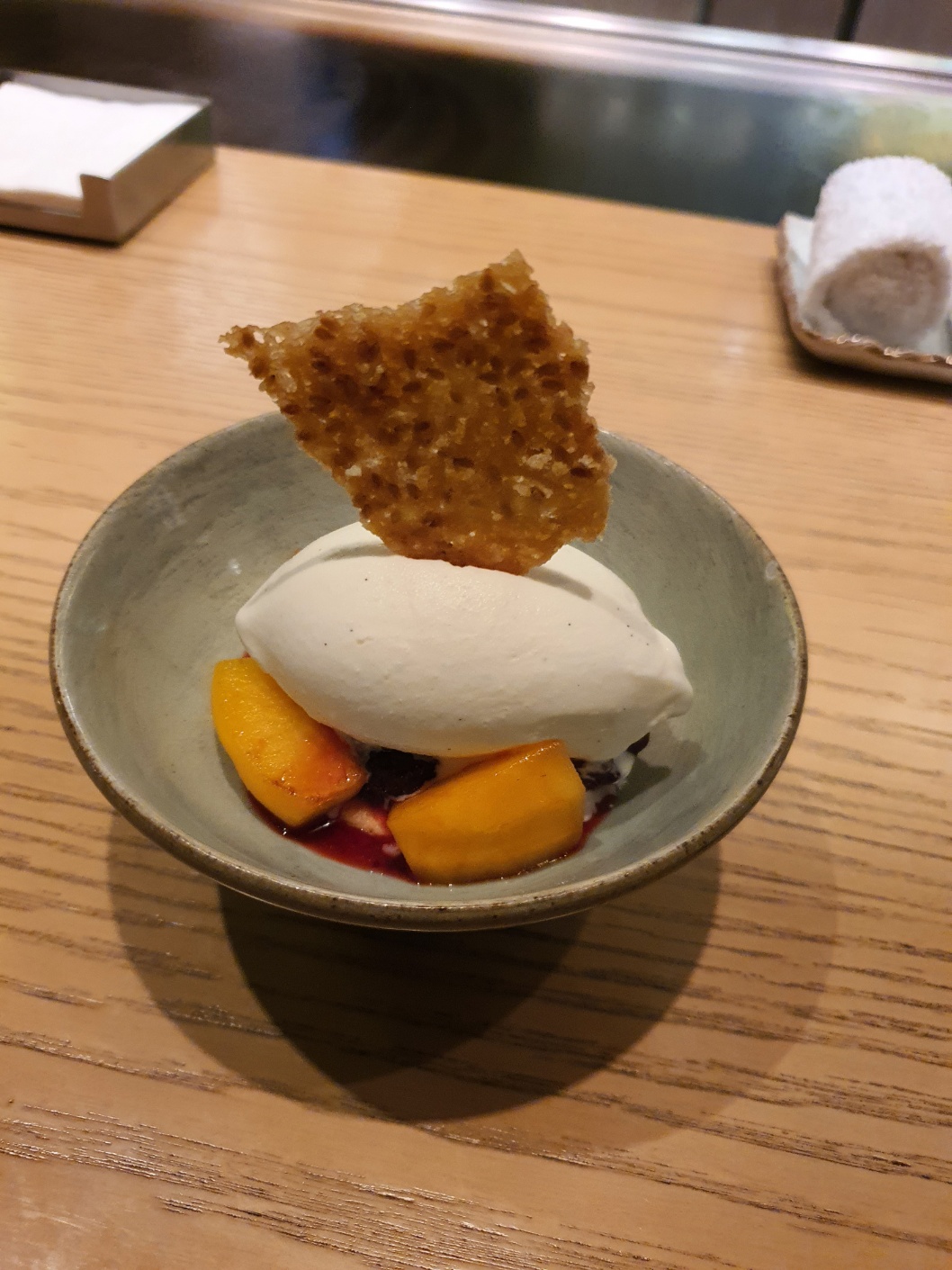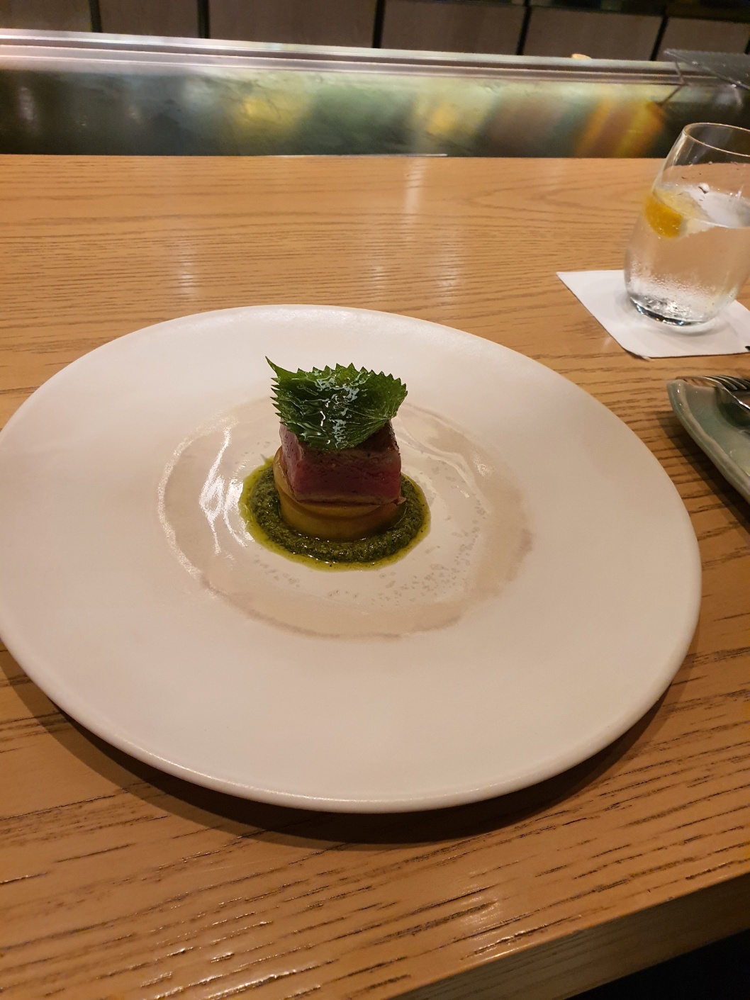 메로 구이라고 설명을 해주셨는데 생선이 매우 먹기 힘든 것이고 해당 비닐은 친환경 소재로 건강에 문제 없다고 설명을 해주셨는데 정말 생선이 부드럽고 입에 넣자마자 녹았으며 소스또한 너무 맛있었습니다.