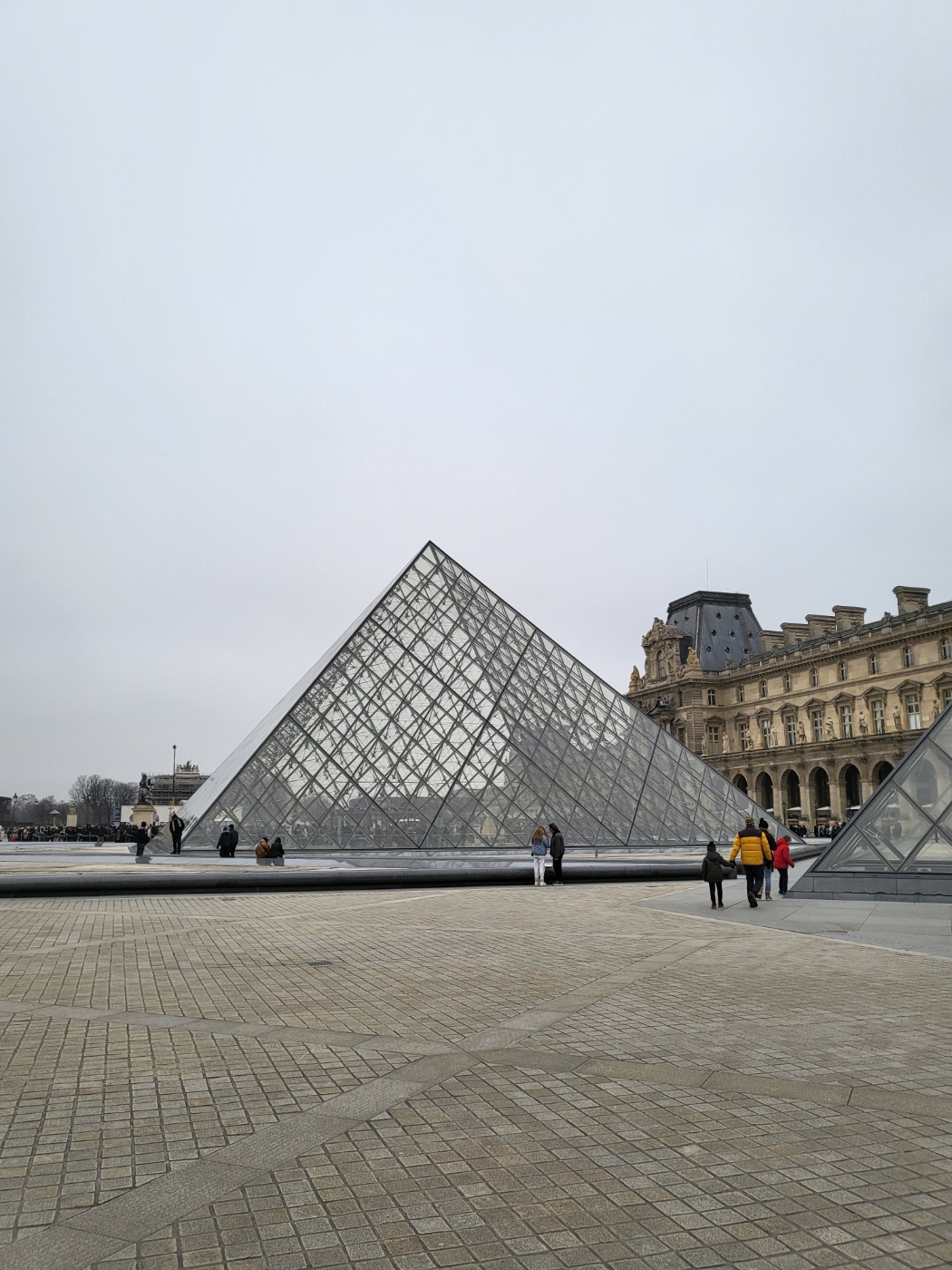 루브르 박물관의 모양은 n 이런 모양에 저 피라미드가 가운데 쏙 들어가 있는 형태입니다.