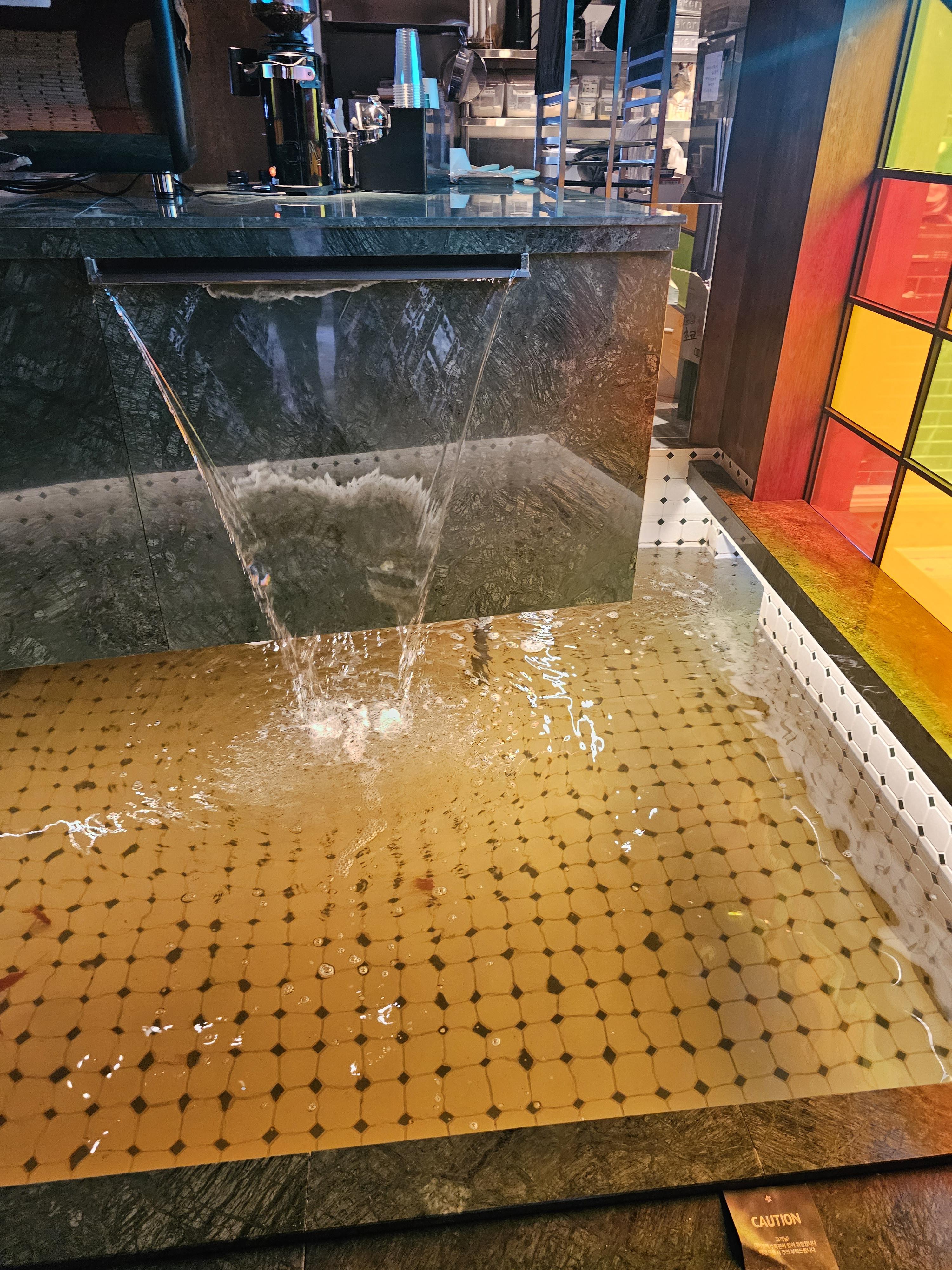 들어오면 1층에 메뉴 주문을 할 수 있고 연못느낌으로 물이 흐르고 있습니다. 더운 여름이라 그런지 풍덩 들어갈뻔 했네요.