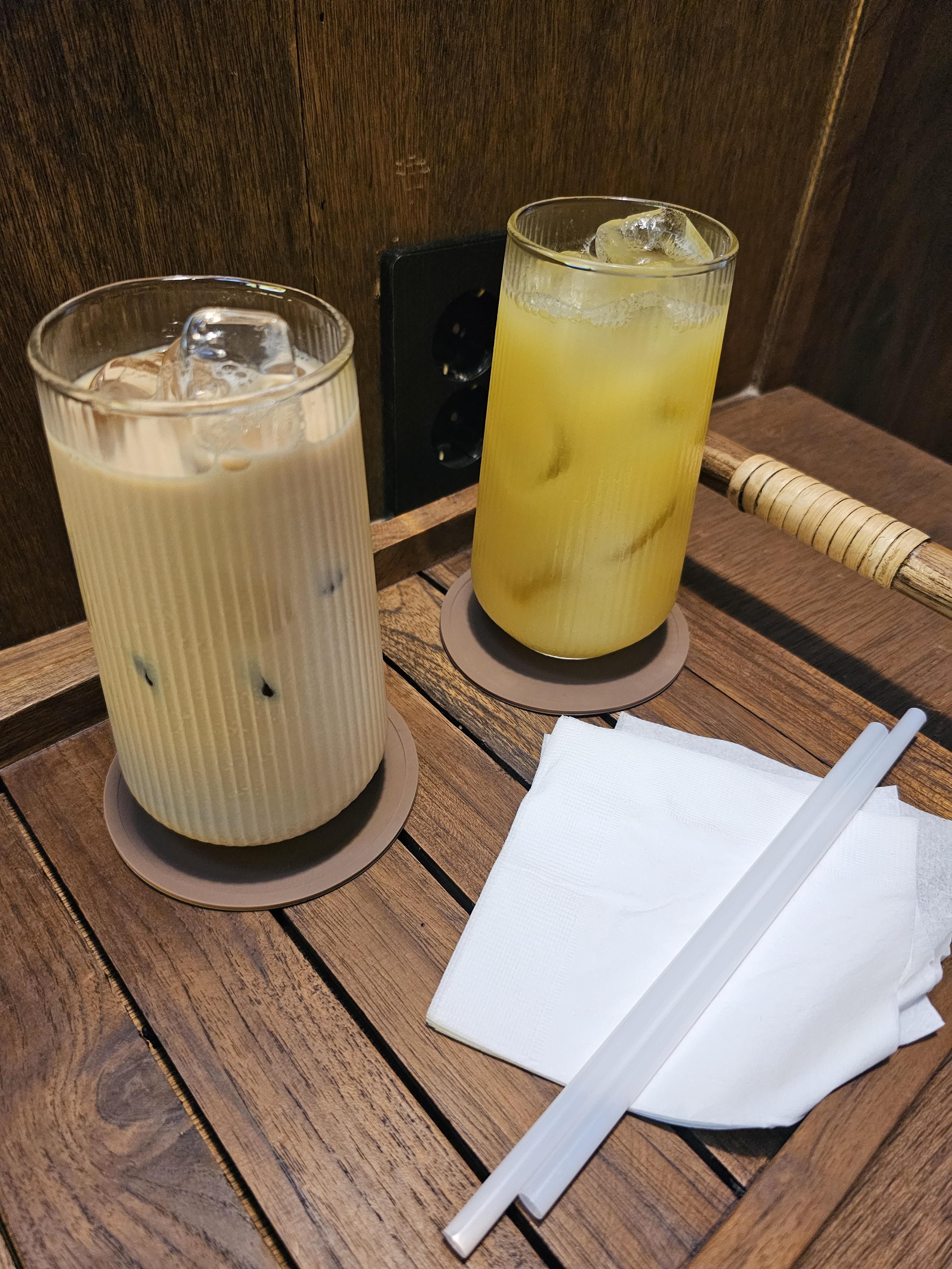 밀크티와 수제 파인애플 주스를 먹었습니다.