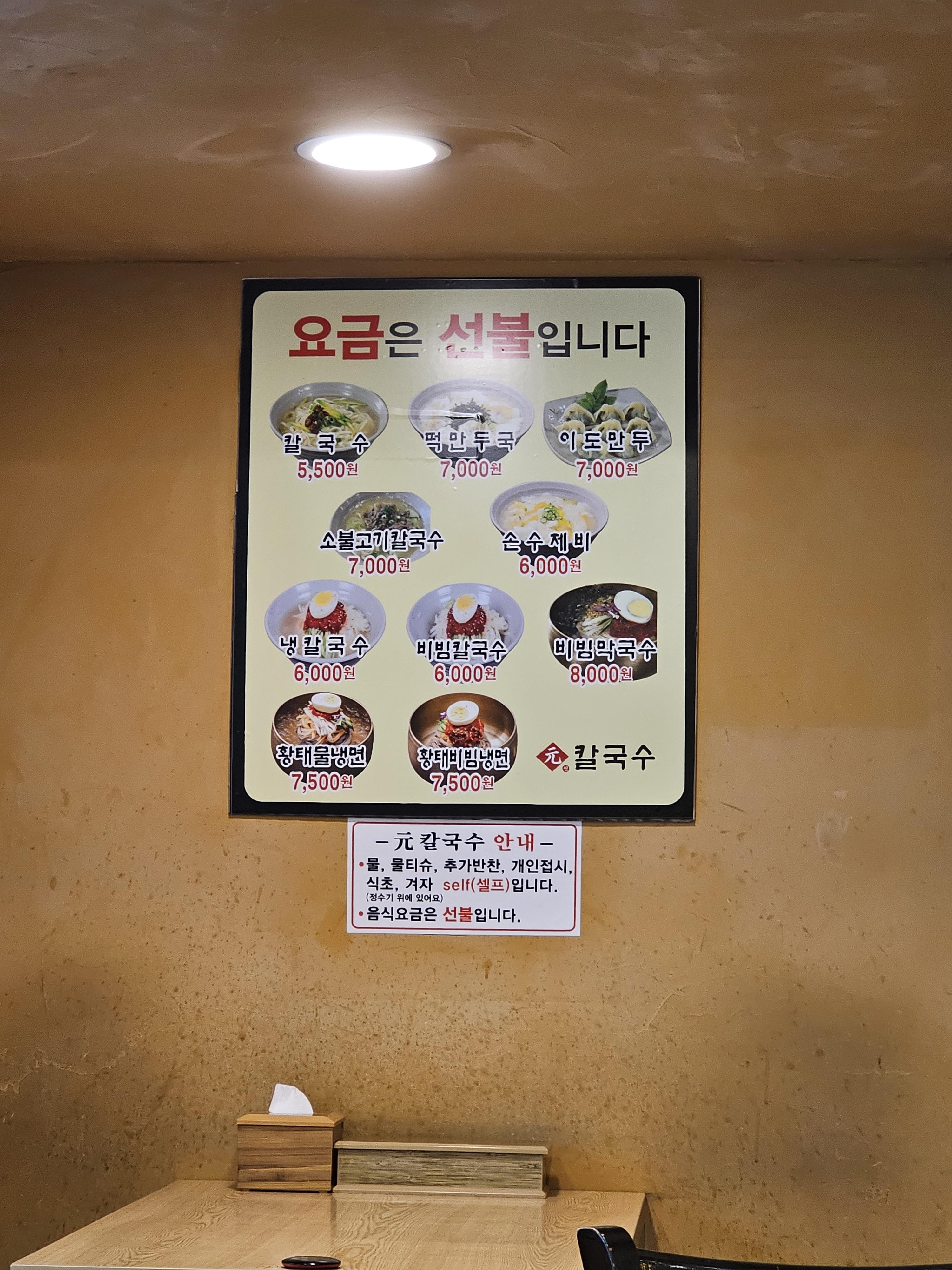 뭘 먹을지 고민하다 간단한 간식을 먹은 뒤라 헤비하지 않은 저녁을 찾다가 근처에 칼국수 집이 있어 먹었습니다.