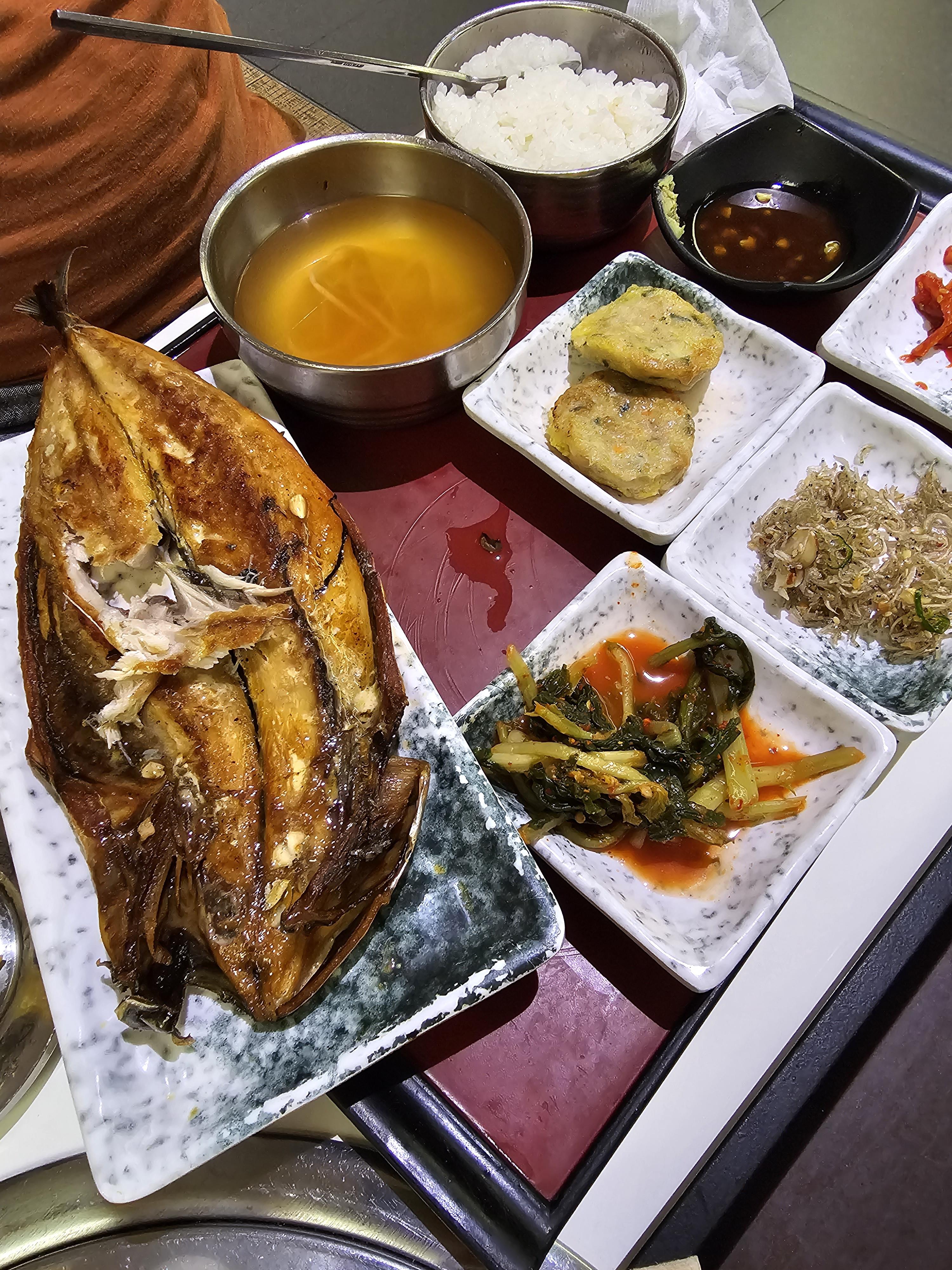 고등어 한상은 엄청 푸짐하게 나오고 고등어 비린내를 잡을 수 있도록 레몬 한조각도 주셨습니다.