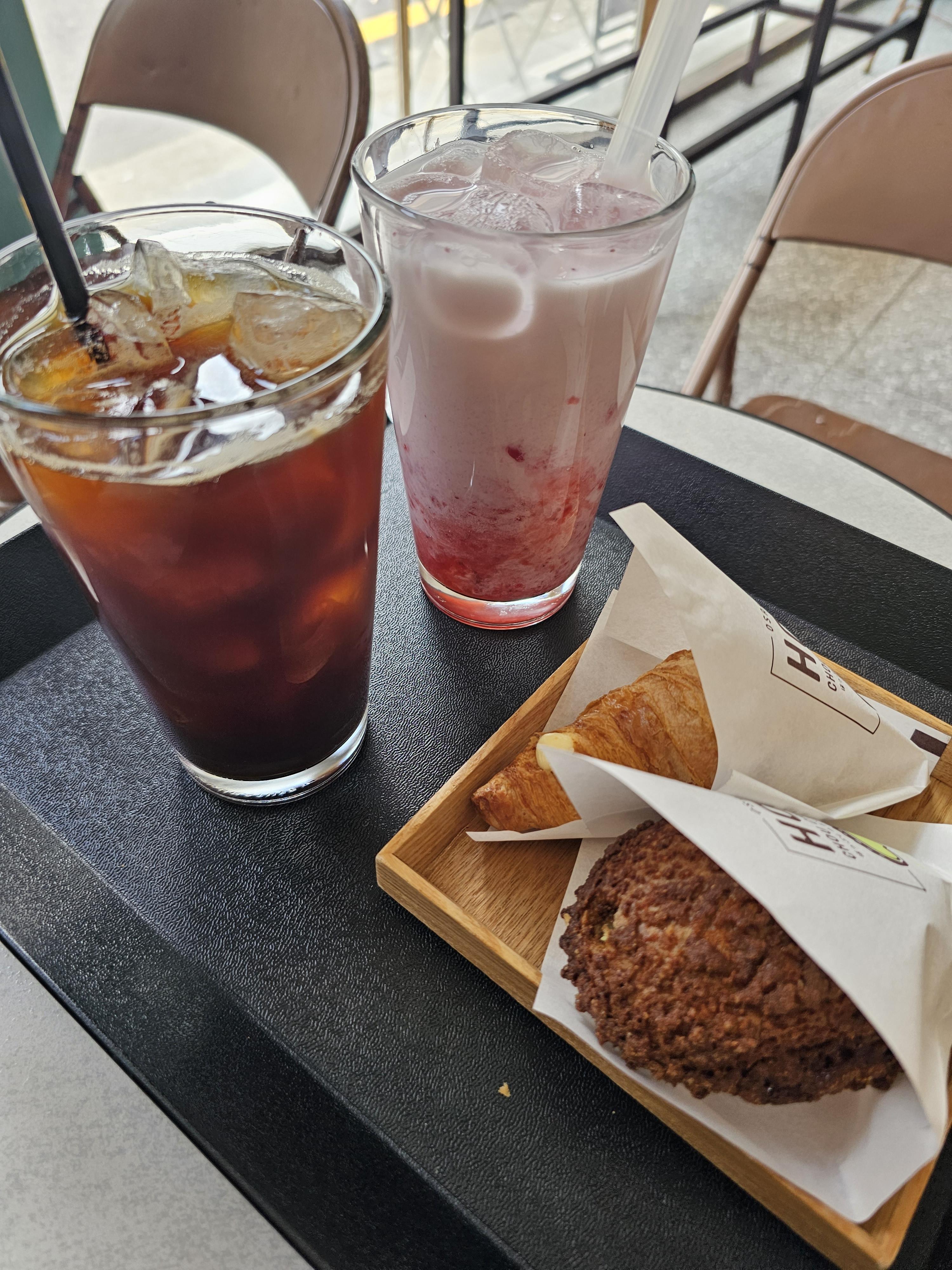 마실거는 아메리카노와 딸기라떼를 주문했고,